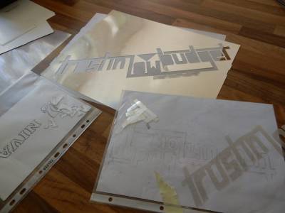 Das Design übernahm ich letztendlich grob von den Entwürfen ganz am Anfang. Die genaue Linienführung entwickelte sich während des Abklebens und durch kleine Patzer, die spontane Richtungswechsel erzwangen.